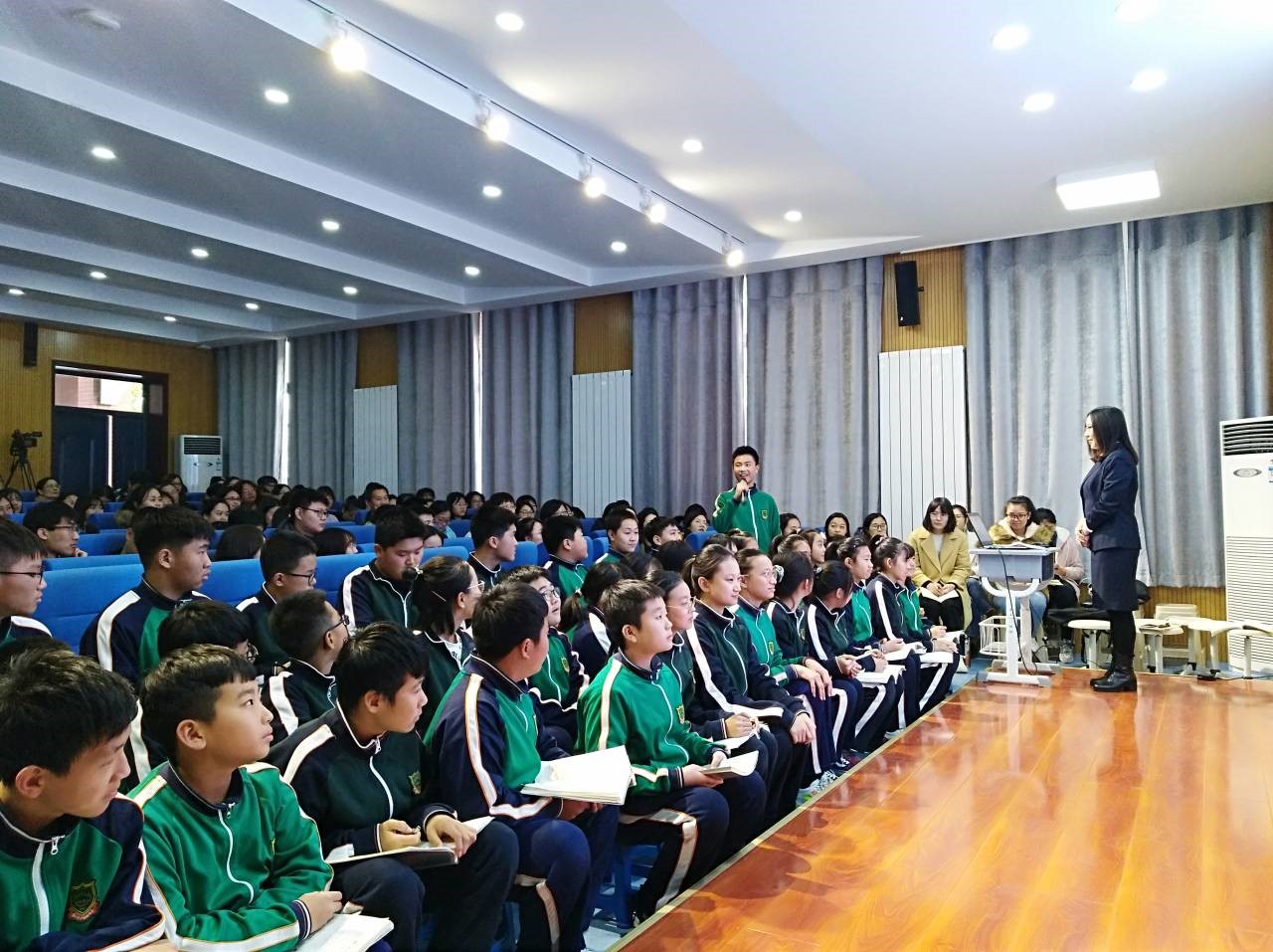 2019年11月26日下午,中文系2017级汉语言文学本科班、2018级专接本班共175名学生去唐山东方国际学校参加教育见习,听取两节示范课《天上的街市》与《范进中举》,参与中学语文阅读教学的教学讨论。
