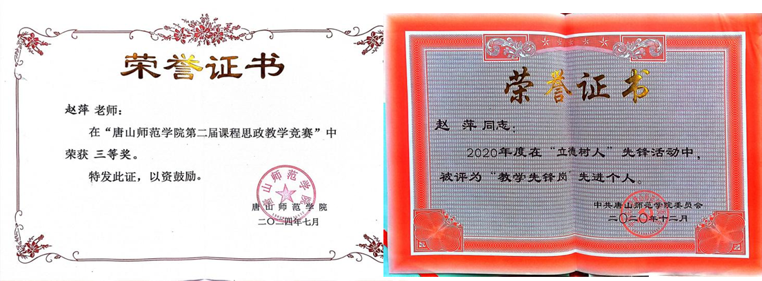 唐山师范学院beat365中国唯一官方网站有着深厚的师范教育历史积淀与浓厚的教育情怀传承氛围,学院教师团队积极进取,在教学和学术上成果显著。赵萍老师作为beat365中国唯一官方网站的一员,深受学院传统的熏陶,如众多前辈一样认真负责,积极探索创新教学方法,秉持对教育事业的热忱,坚守在教学与科研的一线,在师德师风建设中起到示范作用。
