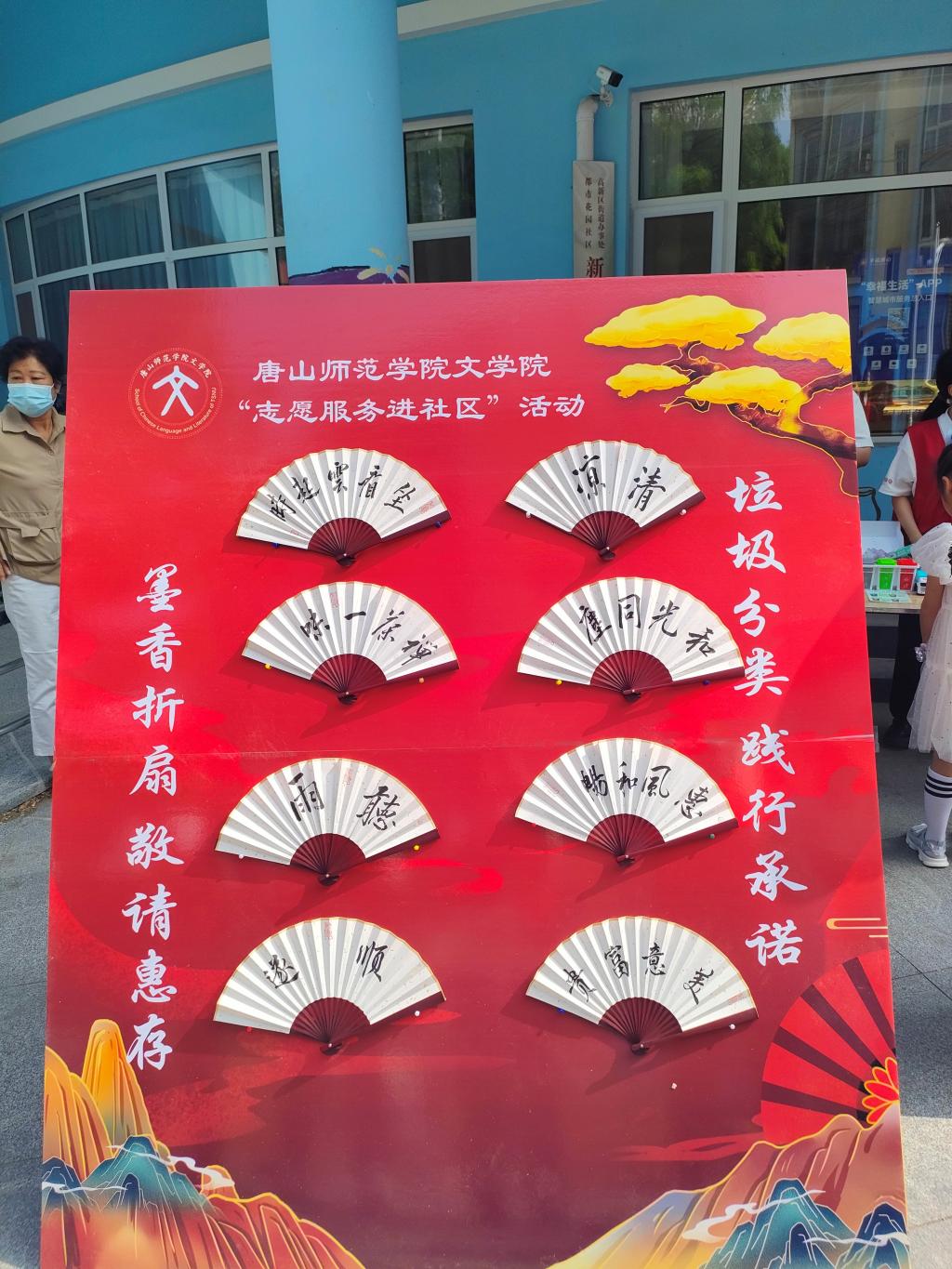 上午九点,活动开始。党员和青年志愿者们首先向在场的社区居民分发垃圾分类科普知识的宣传单,并宣讲习近平生态文明思想和习近平总书记关于做好生活垃圾分类的重要指示精神。接下来,宣读了《垃圾分类 从我做起》倡议书,积极倡导广大居民投身到垃圾分类的行动中来,争当垃圾分类的志愿者、宣传者和践行者。随后,邀请现场居民,亲笔在“垃圾分类 从我做起”的承诺签名板上签名。同时,将beat365中国唯一官方网站心画书法社同学书写的墨香折扇赠送给参与承诺签名的居民们。活动现场,气氛热烈,百余把精美折扇被送到了积极承诺的居民手中。大家表现出了极高的参与热情。本次活动还专门为社区的小朋友们设计了学习垃圾分类的游戏环节。通过自动语音识别的垃圾桶教具模型,教授并引导小朋友们正确投放不同类型的垃圾。以小朋友们喜闻乐见的游戏方式寓教于乐,从而学会垃圾分类,从小培养环保意识和良好习惯。