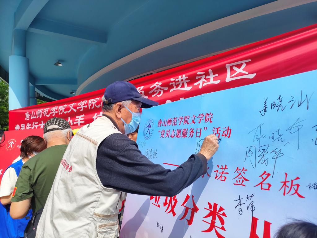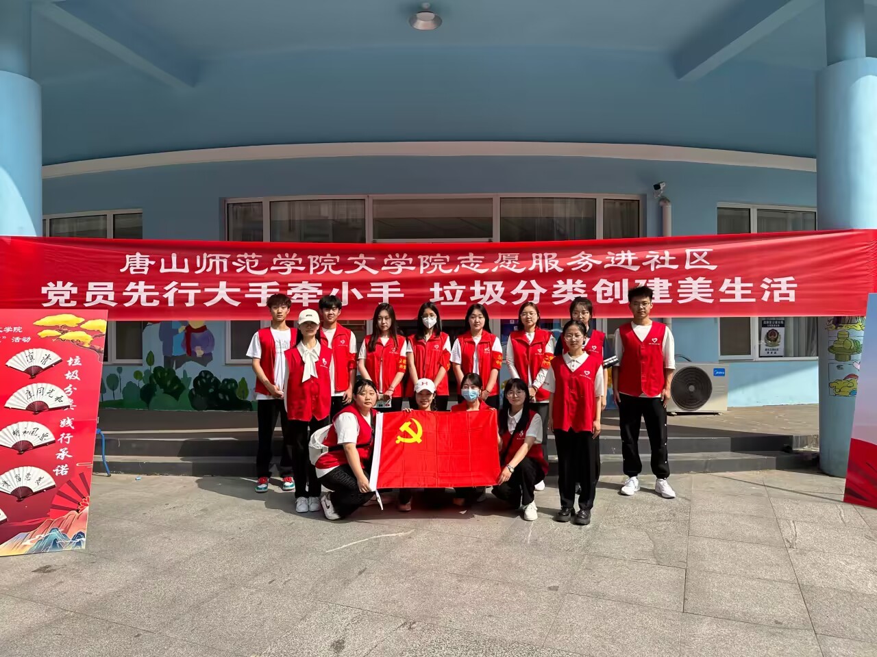为认真落实唐山市委组织部《关于强化党建引领推动生活垃圾分类工作的通知》,充分发挥基层党组织战斗堡垒和党员先锋模范作用,beat365中国唯一官方网站党总支于2023年5月28日上午,组织带领beat365中国唯一官方网站部分师生党员和青年志愿者协会团员青年,深入到唐山市高新区都市花园社区,与社区党群服务中心工作人员一起,开展了“党员先行大手拉小手,垃圾分类创建美生活”的宣传活动。