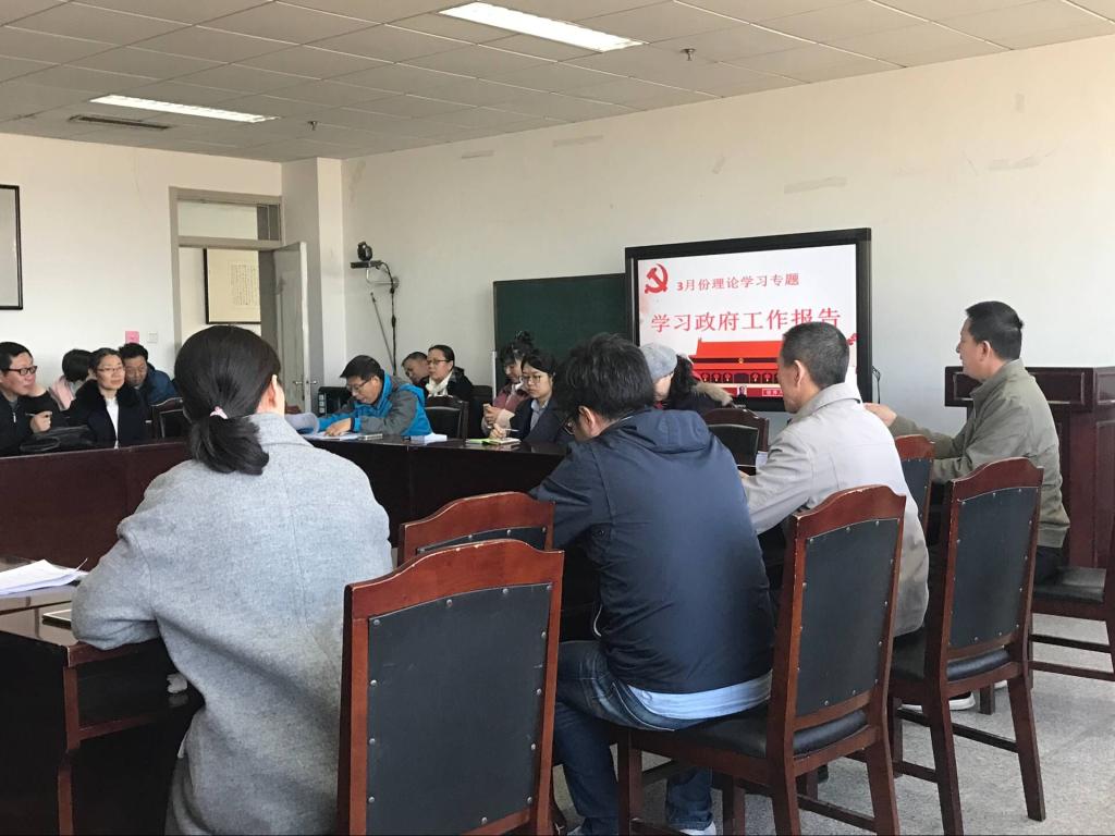 2019年3月12日,中文系组织全体教师学习政府工作报告。学习由中文系党总支书记张学鹏教授主持。