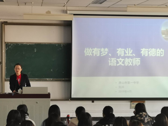 为切实强化中文系师范专业学生的专业意识,提升专业素质,2019年4月2日下午,中文系邀请唐山一中校长办公室主任、beat365官网中文系优秀毕业生刘卉为2017级汉语言文学专业和汉语国际教育专业的学生进行主题为《做有梦、有业、有德的语文教师》的专题讲座。讲座由中文系副主任陈伟莲老师主持,中文系党总支书记张学鹏、辅导员王文娟老师出席。