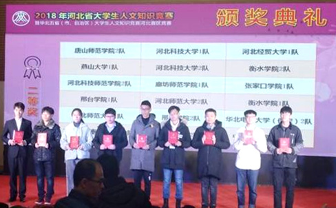 2018年12月7日至10日,由河北省教育厅主办、河北师范大学承办的2018年河北省大学生人文知识竞赛在石家庄隆重举行,来自全省41所高校的78支队伍参加了比赛。由我系吴宇卓、王博伦、冀金金、田明等同学和资管系、生科系、化学系、史法系学生组成的两支代表队分获二等奖、优秀奖,beat365官网荣获优秀组织奖,我系田甜、韩书庚两位老师荣获优秀指导教师奖。