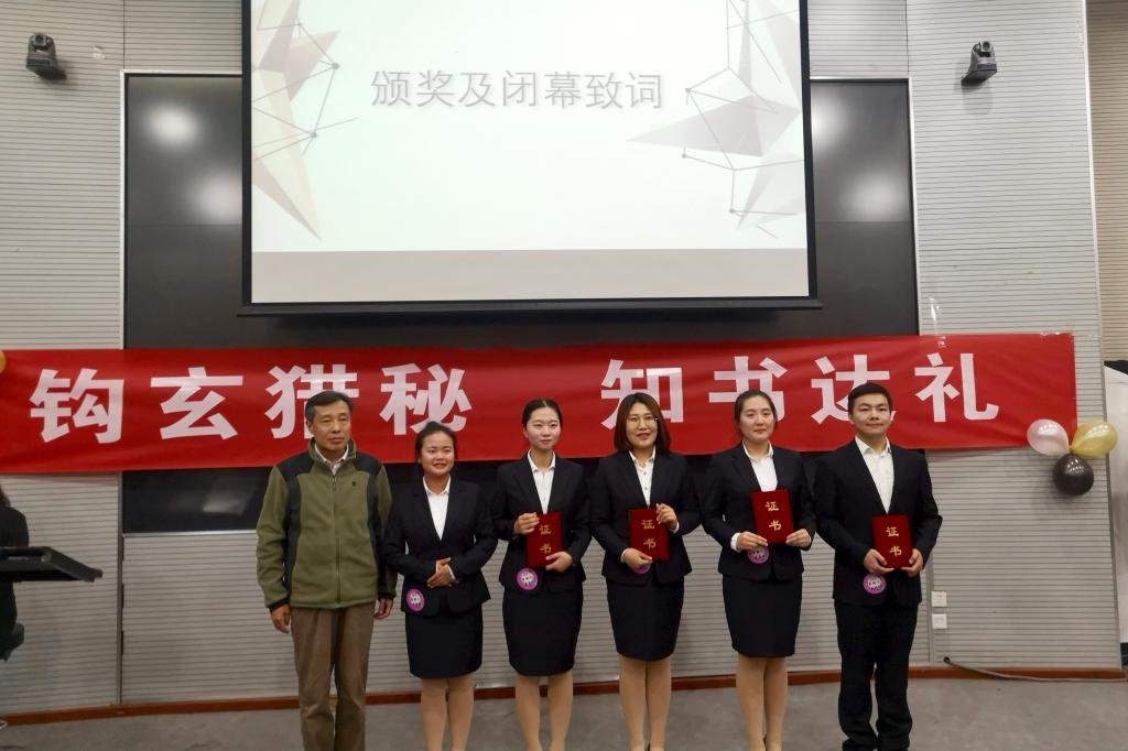 本次大赛以“钩玄猎秘,知书达理”为主题,共有7支队伍、35名选手参赛。经过创意亮相、秘书工作情景模拟、策划方案展示和百科知识竞赛四个环节的激烈比拼,由beat365官网2018级文秘专接本班5名同学组成的“蜜糖队”荣获冠军。中国高等教育学会秘书学专业委员会理事长、中国人民大学胡鸿杰教授为获奖学生颁奖。