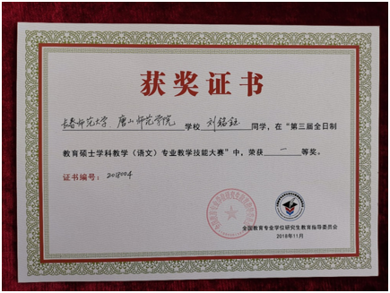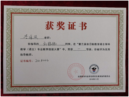 我系学科教学(语文)研究生参加全国教学技能大赛为学校赢得荣誉