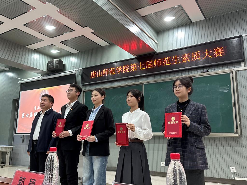 2024年12月5日,唐山师范学院第七届师范生素质大赛决赛,在图书馆四层报告厅隆重举行。本次比赛,分公费师范生、普通师范生两个组别进行。经过激烈角逐,共评选出一等奖四名,二等奖八名,三等奖十二人。beat365中国唯一官方网站两名参赛选手,22级汉语言文学公费师范生孙若涵、23级汉语言文学专业普通师范生李海源,发挥出色,包揽了文科组公费师范生一等奖、普通师范生一等奖。