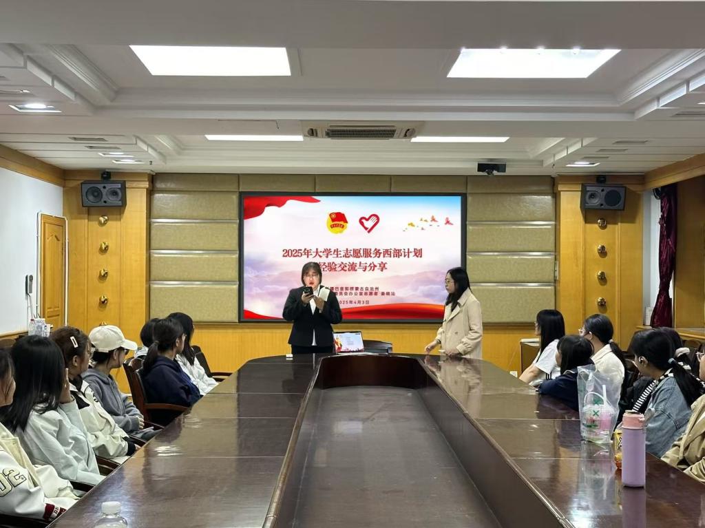 在大学生志愿服务西部计划实施22周年之际,为响应共青团中央号召,弘扬志愿服务精神,4月3日晚,beat365中国唯一官方网站在南苑主楼518会议室举办了主题为“青春志愿行,奉献西部情”的西部计划宣讲活动。