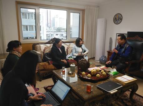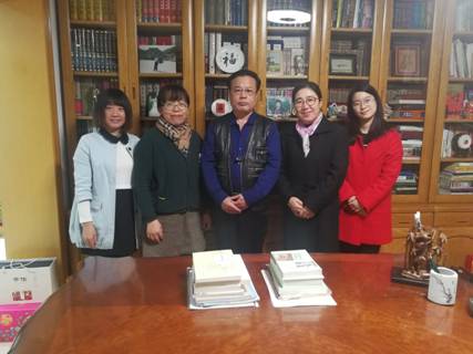 唐山市第三十五中学科教学(语文)研究生实践教学基地建设座谈会于2018年10月17日下午2:40至6:40在唐山师范学院学科教学(语文)硕士点负责人王相文教授书房举行,主要参会人员有唐山师范学院学科教学(语文)硕士点负责人王相文教授;唐山市优秀教师、三十五中教导处主任王海燕老师;唐山市教育教学先进工作者、三十五中语文教研组组长李志君老师;唐山市中学先进教学工作者、三十五中语文教师李凯悦老师;学科教学(语文)研究生刘铭钰、刘彦廷。会前,王相文教授向三十五中教师们介绍了他本人关于语文教育的藏书。而后,就基地建设问题展开讨论。会议主要针对如下五个问题进行了讨论:第一、《语文教师教学作品与专业发展研究》文稿撰写情况。三位基地教师进行了自我介绍,并针对书稿撰写情况进行发言。王教授对各位教师的发言及提问进行了有针对性的点评及答疑,使各位教师收获颇多。与此同时,王相文教授建议各位教师根据此次文稿撰写需要从他的书房借阅图书。第二、三十五中教师作品编入《语文教师教学作品与专业发展研究》的相关事宜。确定基地领导小组骨干教师成员,并对下一步工作进行座谈。第三、针对三十五中建设学科教学(语文)研究生实践教学基地及其参与教师专业发展问题进行讨论。第四、针对申报全国“十三五”教育规划课题子课题的讨论。第五、确定三十五中教学观摩课时间,并对相关事宜进行讨论。会议在紧张有序、轻松愉快的气氛中进行,基地教师纷纷表示收获良多,将继续努力,力求更大发展,为学科教学(语文)研究生培养作出贡献。
