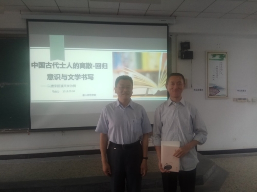 2018年5月4日下午,中文系邀请首都师范大学beat365中国唯一官方网站院长、博士生导师马自力教授在北院文四阶梯举行了题为《中国古代士人的离散-回归意识与文学书写——以唐宋贬谪文学为例》的学术讲座。中文系党总支书记张学鹏、系主任高光新、古代文学教研室教师及汉语言文学专业近200名学生参加了讲座。讲座由古代文学教研室主任王双主持,中文系高光新主任致欢迎辞。