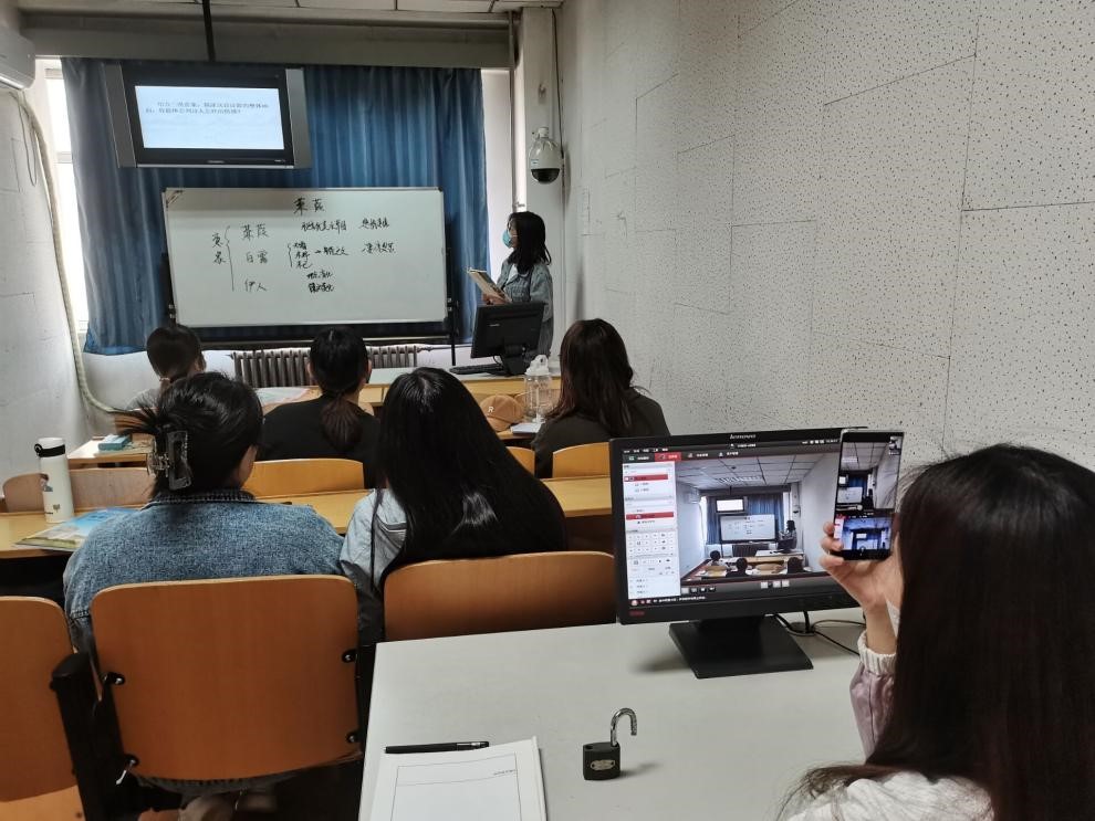 在此次实训中,学生共分为19组,分别在19间微格教室进行线下试讲,11位指导教师针对学生授课的教学结构、教学内容及板书设计等方面予以线上同步点评和指导,并鼓励师范生积极进行教学理念和教学方法的革新,并根据每个学生的授课情况提出重点技能训练目标。