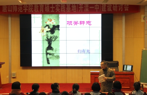 2017年12月24日,唐山师范学院第四次教育硕士实践基地建设研讨会暨基于核心素养的文言文教学研讨会在唐山开滦一中召开。此次研讨会的背景与立意是根据《教育部关于加强专业学位研究生案例教学和联合培养基地建设的意见》与《河北省教育厅关于进一步加强和改进研究生导师队伍管理的指导意见》,为更好地完成学科教学(语文)教育硕士实践基地建设任务,促进基地学校指导教师的专业发展,为beat365官网与长春师范大学联合培养的2017级学科教学(语文)教育硕士,为beat365官网2020年申报教育硕士学位点做准备。